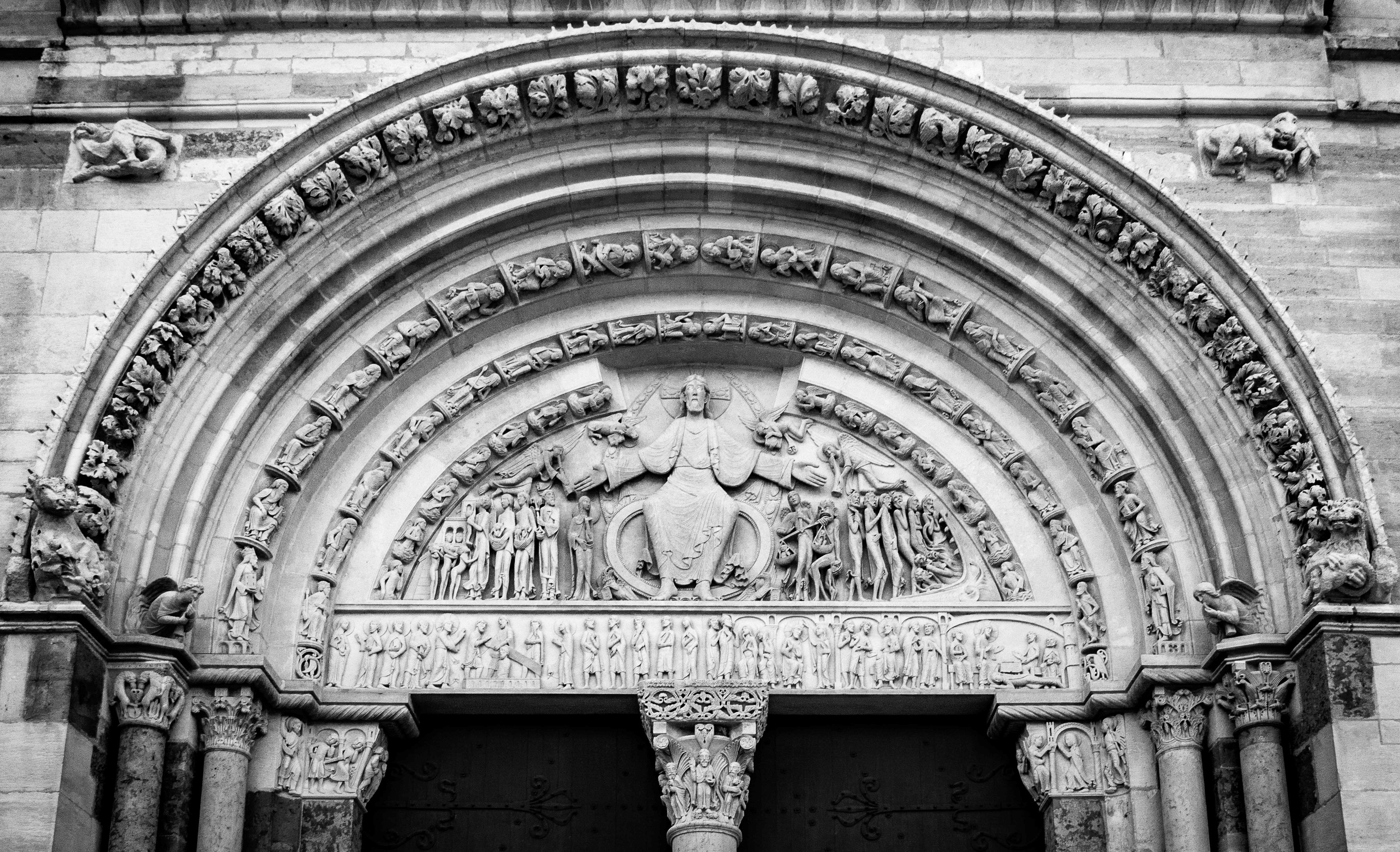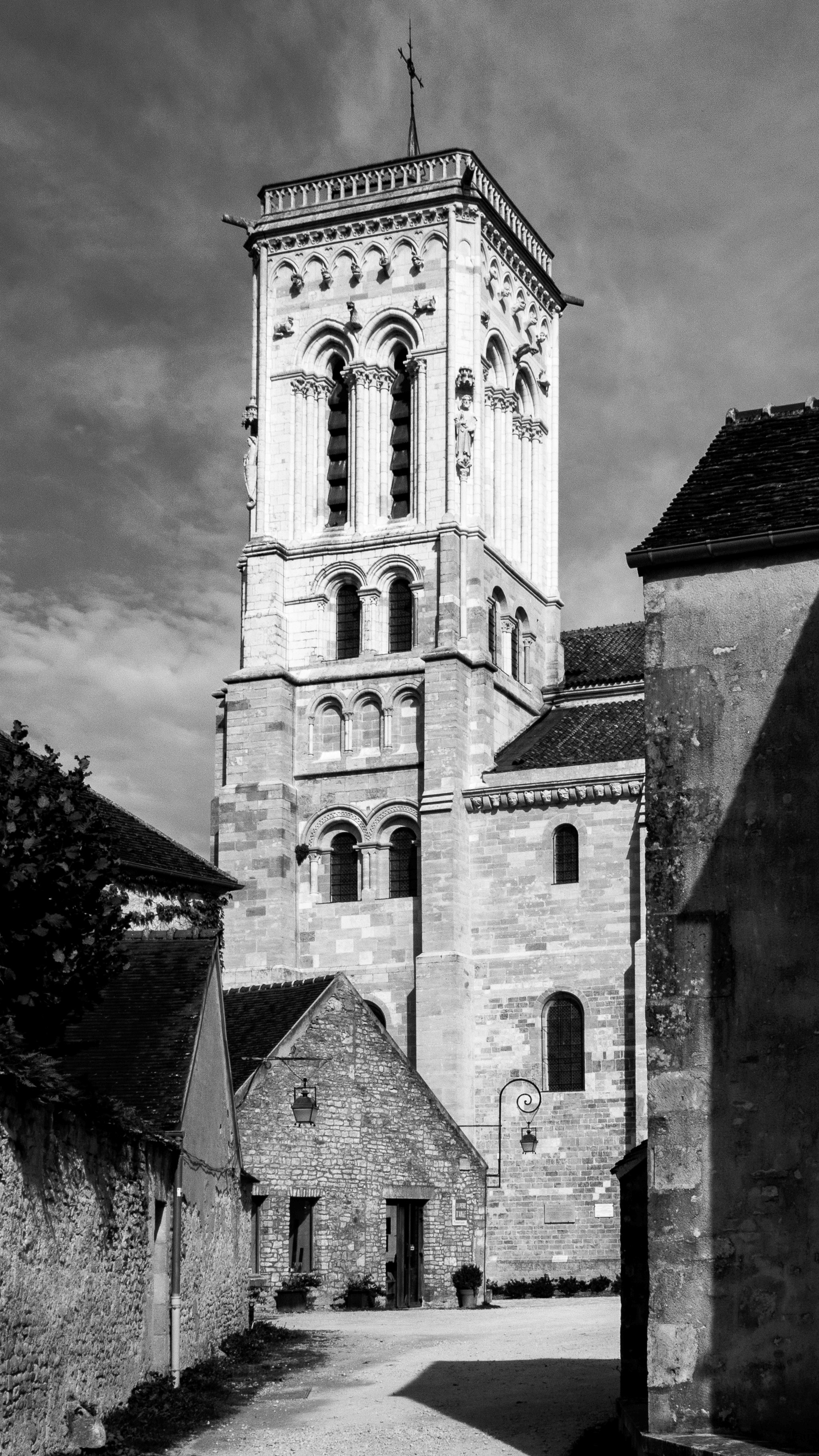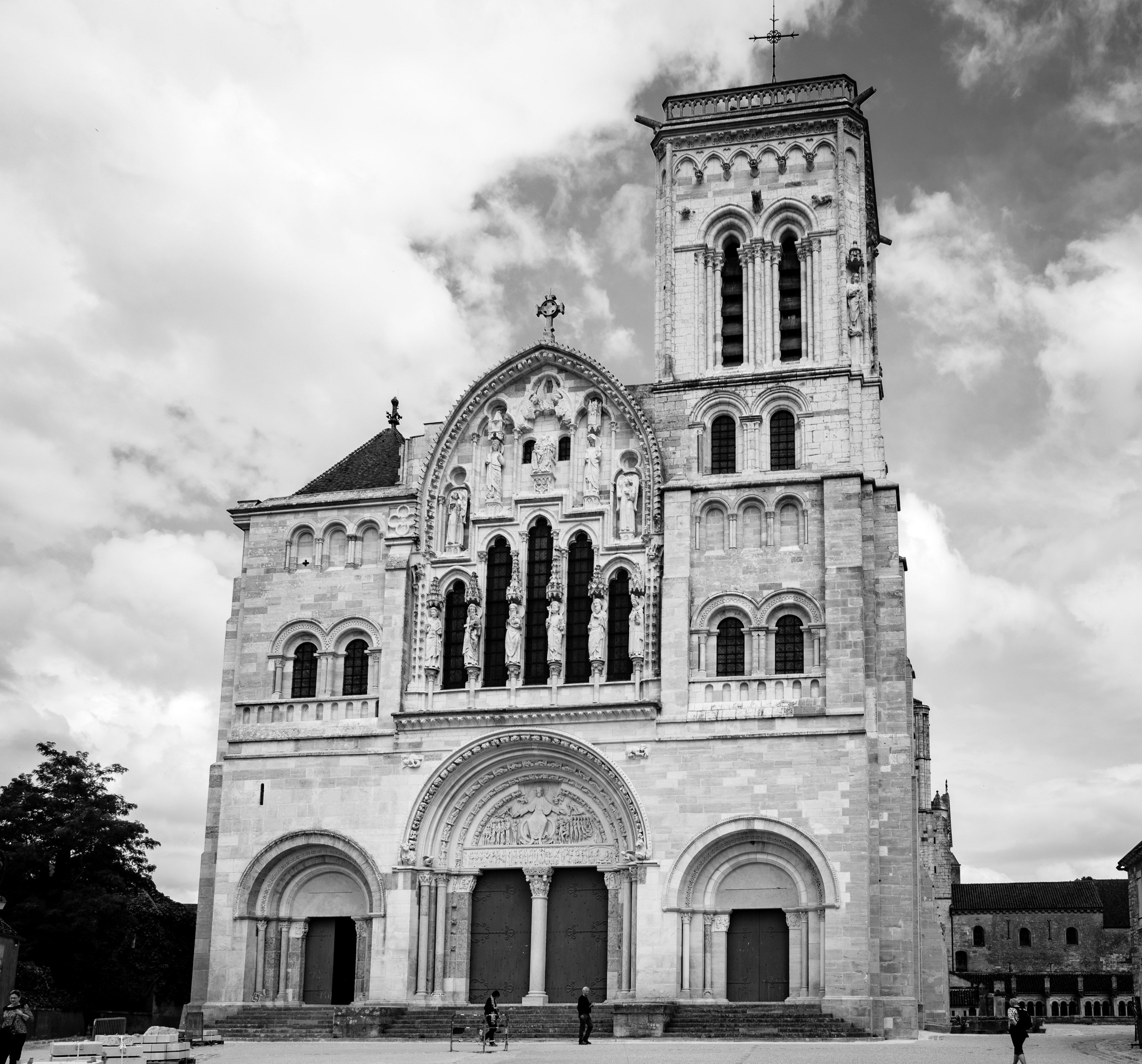 La basilique Sainte-Marie-Madeleine de Vézelay est une ancienne abbatiale française du 12ème siècle située à Vézelay, dans le département de l'Yonne en Bourgogne-Franche-Comté. Haut lieu de la chrétienté au Moyen Âge, Vézelay est un lieu de pèlerinage important sur le chemin de Saint-Jacques-de-Compostelle.Construit entre 1120 et 1140, l'édifice est une illustration majeure de l'architecture romane et de l'art roman en général, avec notamment le tympan intérieur du narthex qui représente un Christ en gloire.