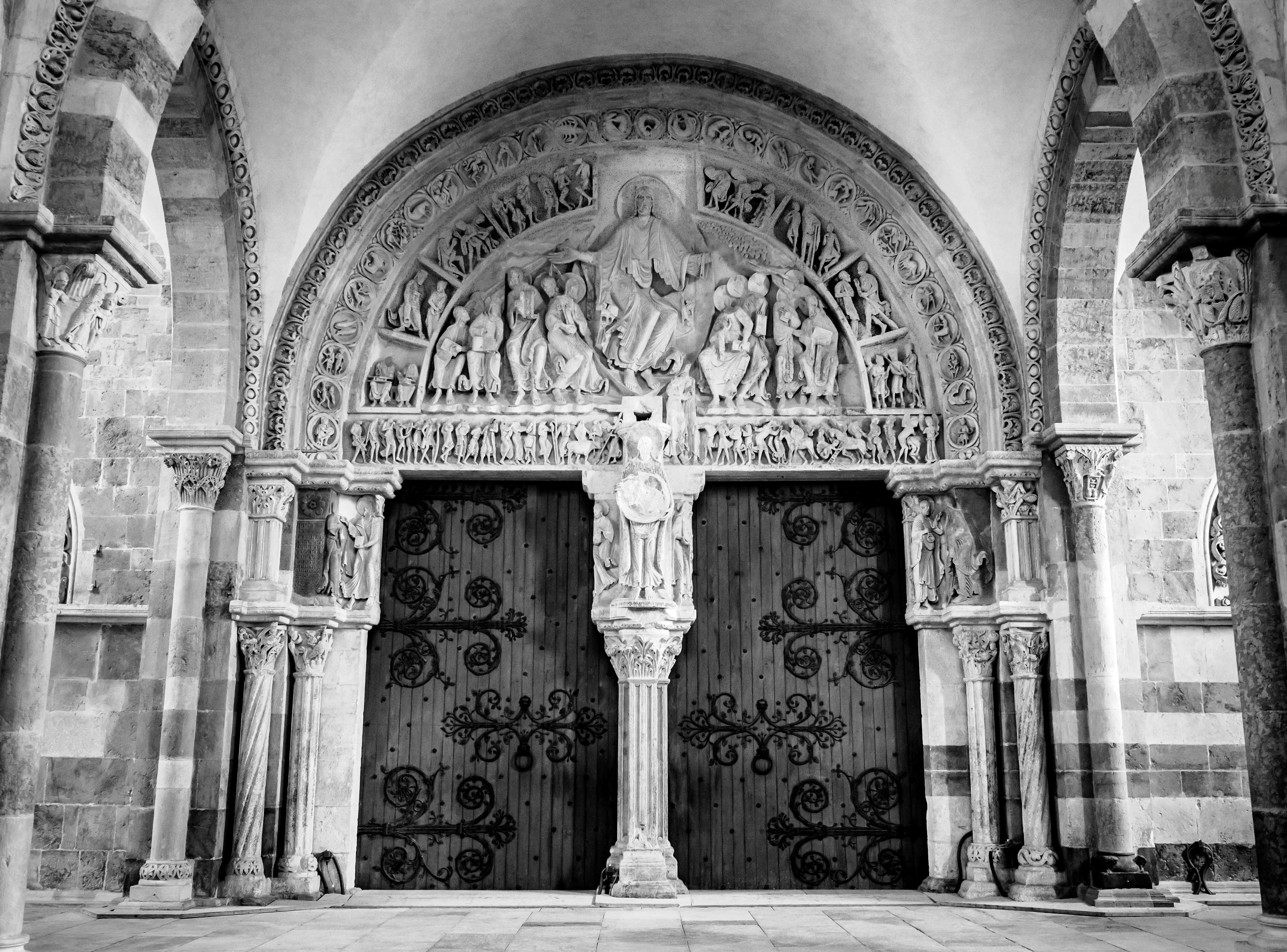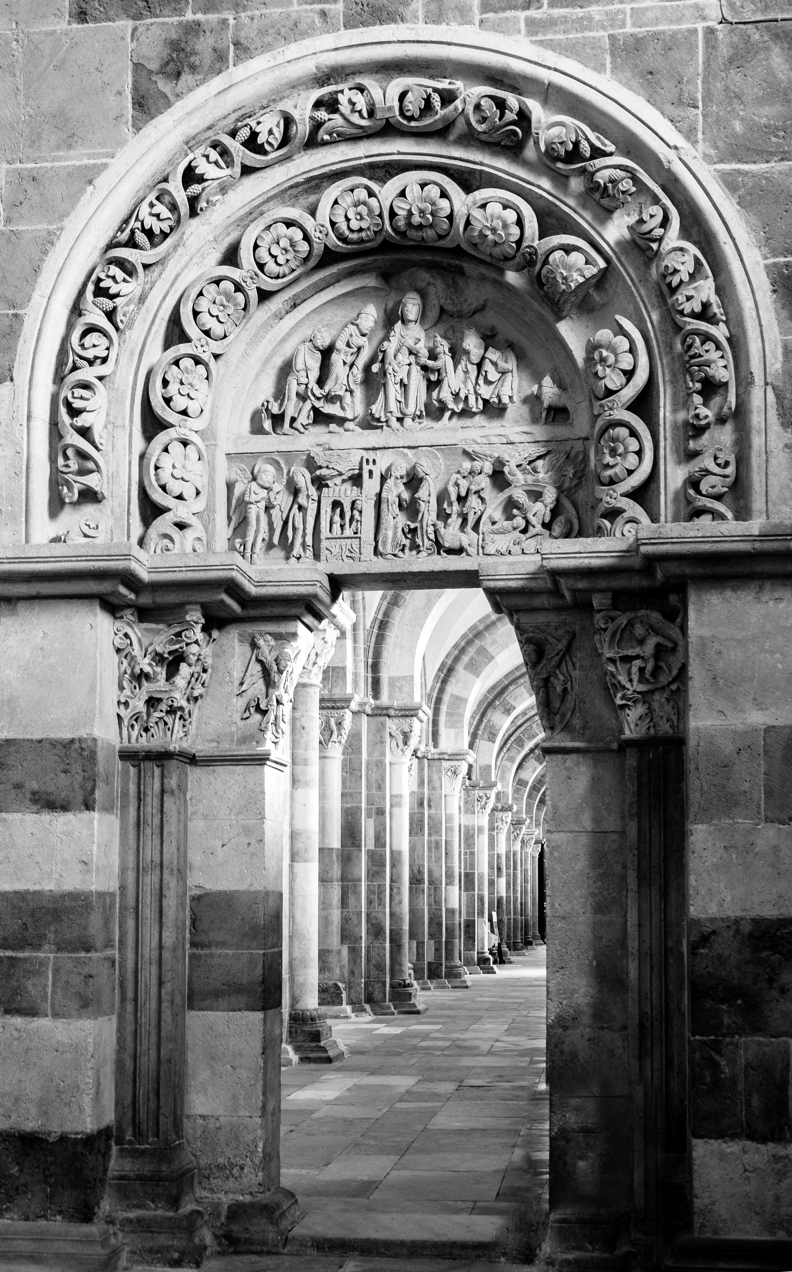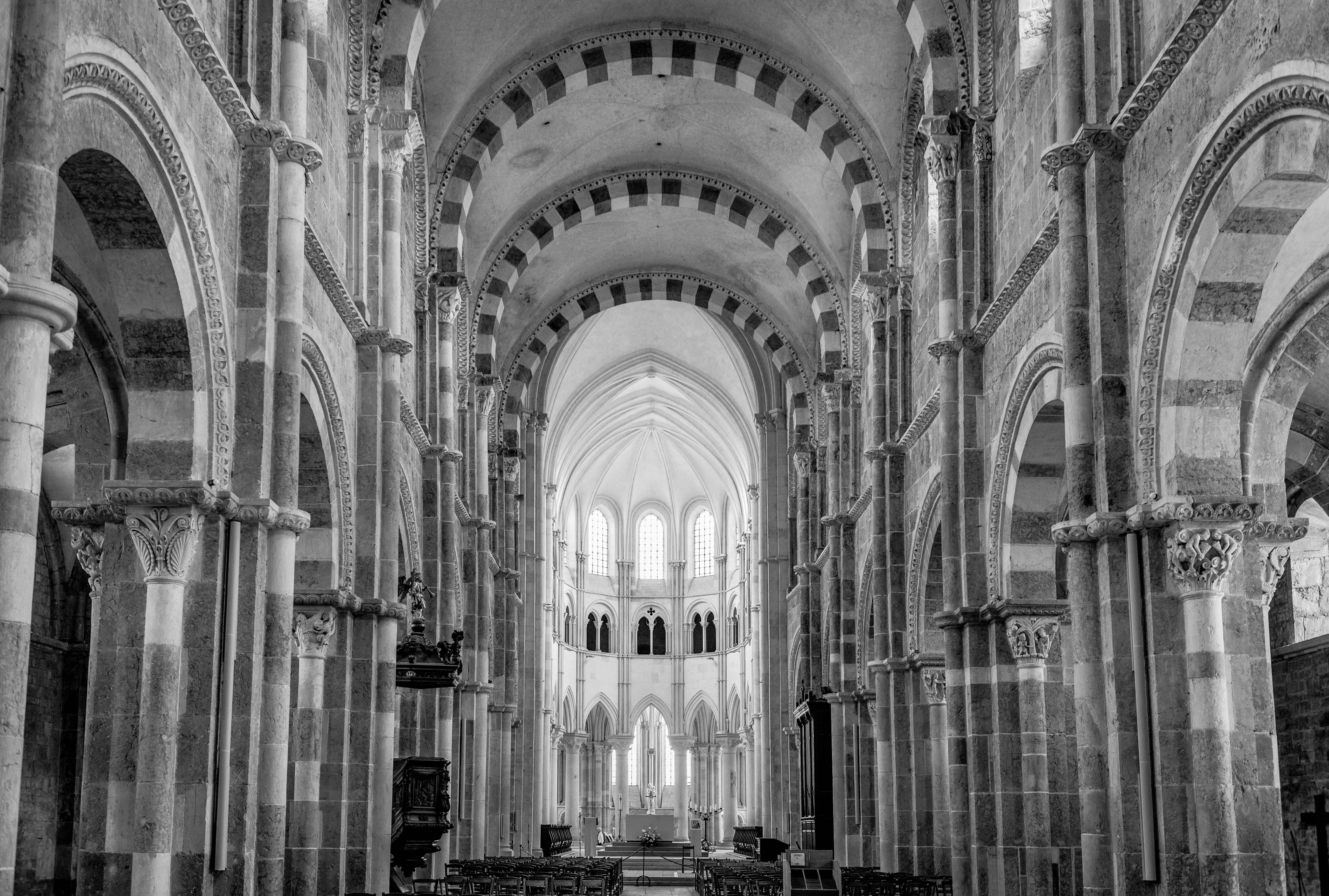 La basilique Sainte-Marie-Madeleine de Vézelay est une ancienne abbatiale française du 12ème siècle située à Vézelay, dans le département de l'Yonne en Bourgogne-Franche-Comté. Haut lieu de la chrétienté au Moyen Âge, Vézelay est un lieu de pèlerinage important sur le chemin de Saint-Jacques-de-Compostelle.Construit entre 1120 et 1140, l'édifice est une illustration majeure de l'architecture romane et de l'art roman en général, avec notamment le tympan intérieur du narthex qui représente un Christ en gloire.